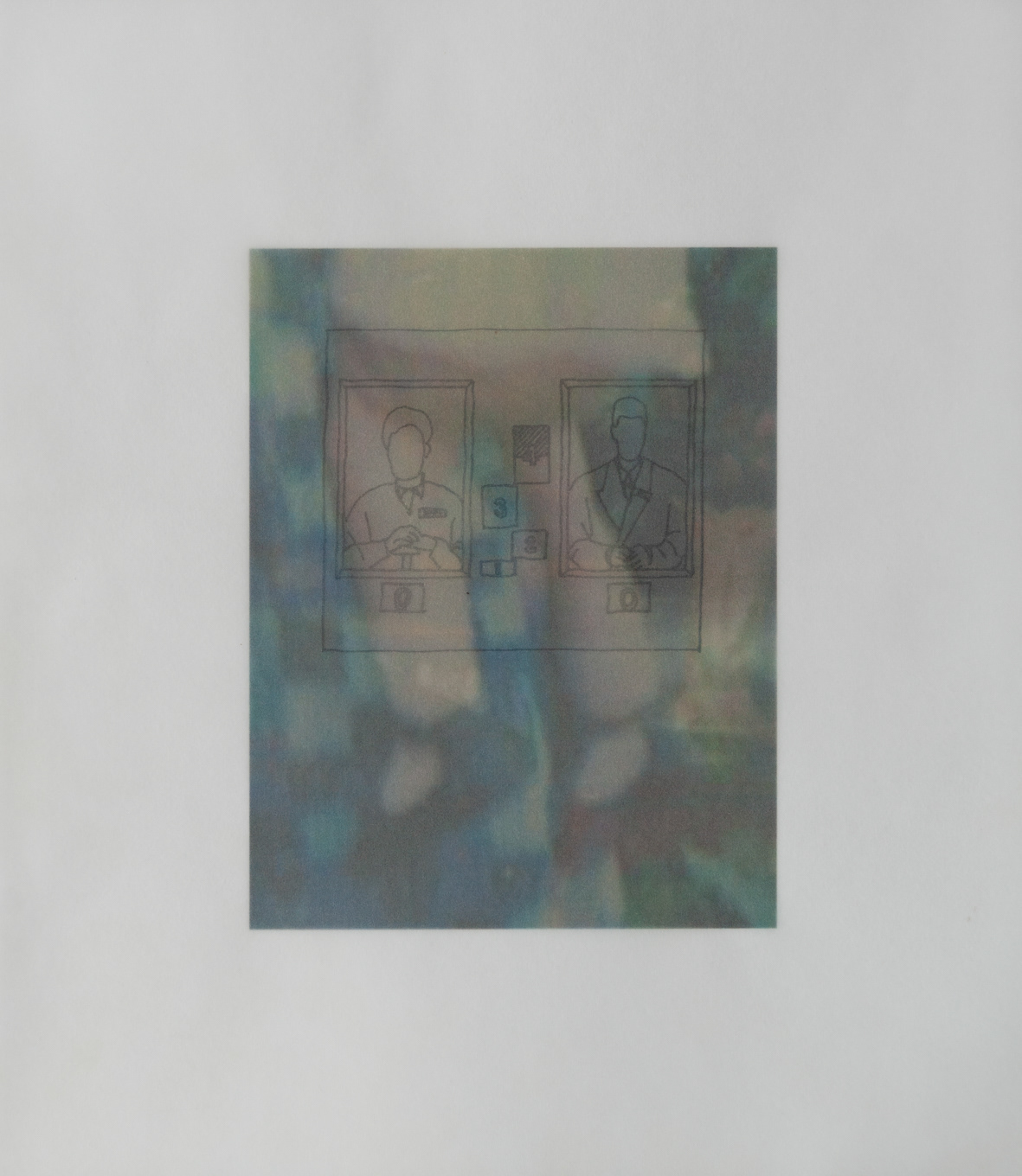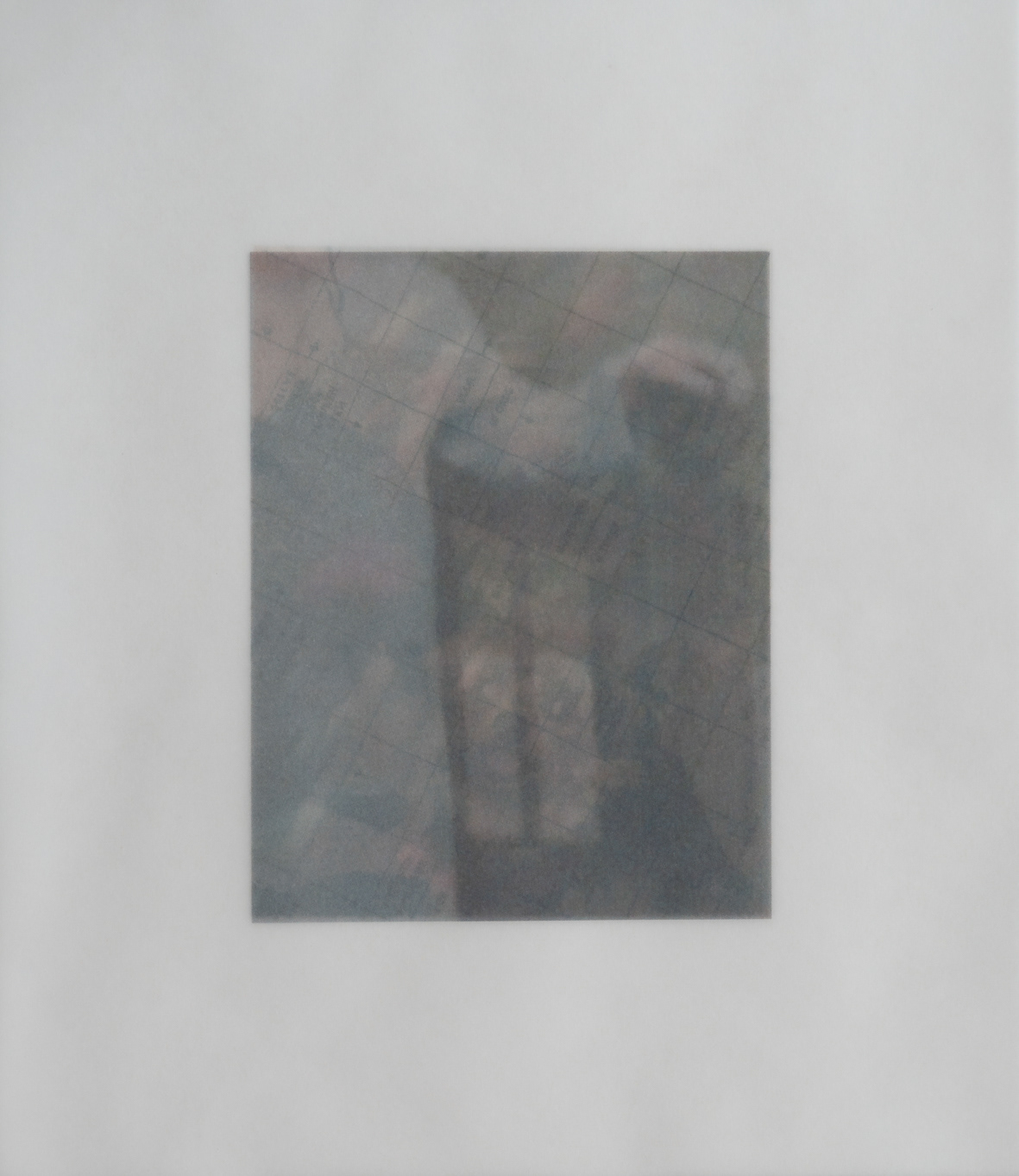 layers of copy paper, tracing paper and transparency, printing ink, black liner, frame, 20 x 23 cm (unframed), 2020